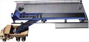 水泥裝車機由平形膠帶機、卸袋機構(gòu)、端部溜槽等組成。平形膠帶機的支架采用鋼板折彎結(jié)構(gòu),即美觀又牢固;驅(qū)動裝置采用擺線針輪減速機,節(jié)省占地面積;張緊方式為中間垂直卸下時,立式膠帶機處于包裝膠帶機的側(cè)邊;當(dāng)需要水泥袋從中間位置卸下時,由電動推桿拉動立 式膠帶機使其擺動與包裝膠帶機縱向成交叉位置,并開動立式膠帶機即可。立式膠帶機的兩個擺動極限位置限位開關(guān),其在工作和非工作狀態(tài)下的定位由限位開關(guān)來實現(xiàn)。特殊設(shè)計的溜槽能使水泥袋恰好落到接續(xù)膠帶機的中心位置。