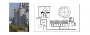 CP均化庫是我廠引進(jìn)德國BMH公司的一種新型生料均化庫,其特點電耗低、均化效果好。CP均化庫的均化機理是庫頂生料通過8條斜槽均勻布料,不同時期的生料在庫內(nèi)呈橫向分布,庫底充氣系統(tǒng)設(shè)計更符合生料充氣后的流動性,呈放射狀斜向分布,環(huán)形區(qū)一般分8個區(qū),每隔5分鐘輪流充氣,充氣區(qū)生料因松動及氣流的引導(dǎo)卸入中心區(qū),庫內(nèi)不同層的生料豎向切割下料實現(xiàn)生料的均化,不同時間的生料進(jìn)入中心區(qū)后再進(jìn)行氣體強烈混合均化,從而達(dá)到理想的均化效果。
