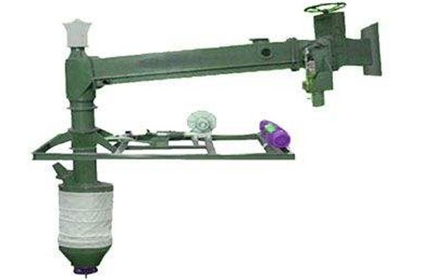 水泥散裝機(jī)由電控箱、電動機(jī)、減速機(jī)、滑輪組伸縮管、吸塵管、鋼絲繩等主要部件組成。通過鋼絲繩、吸塵管把它們連接到一起,形成可伸縮的結(jié)構(gòu)。汽車散裝機(jī)可與料庫下給料設(shè)施聯(lián)鎖運(yùn)行,料車裝滿后,自動停止裝料,實現(xiàn)裝卸過程自動化,裝車效率高、粉塵污染少。